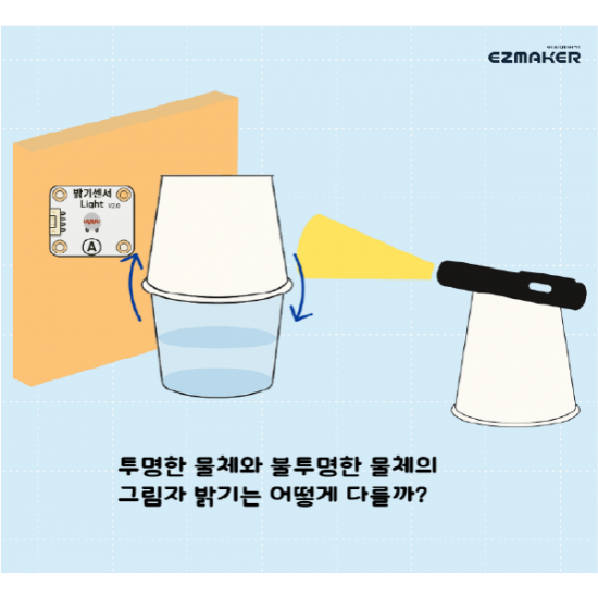 밝기 센서를 활용하여 그림자의 밝기를 수치로 측정하고 비교해보는 빛 탐구 실험 키트!