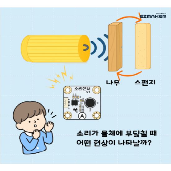 소리 센서를 활용해 매끄러운 면과 거치 면에서 소리가 어떻게 반사/굴절 되는지 비교하는 실험 키트!